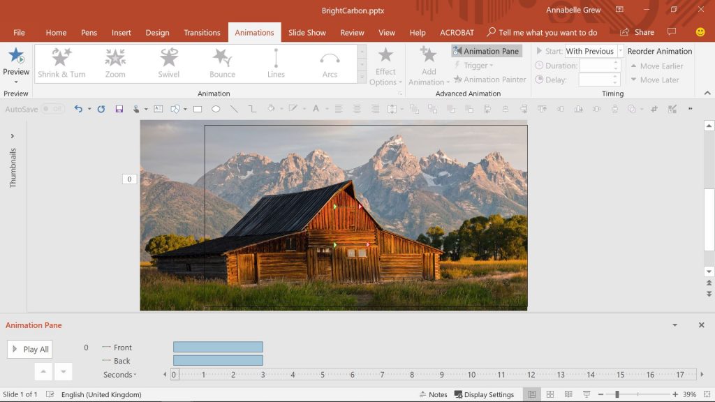 Not only is this a cool effect for all sorts of animations (hey we make animations just using PowerPoint all the time, like this one on the BrightCarbon homepage), but you can use this effect to create some really slick, cinematic slides. Think about how this would take your next keynote presentation up a notch, and add some real design finesse to your next pitch presentation.
